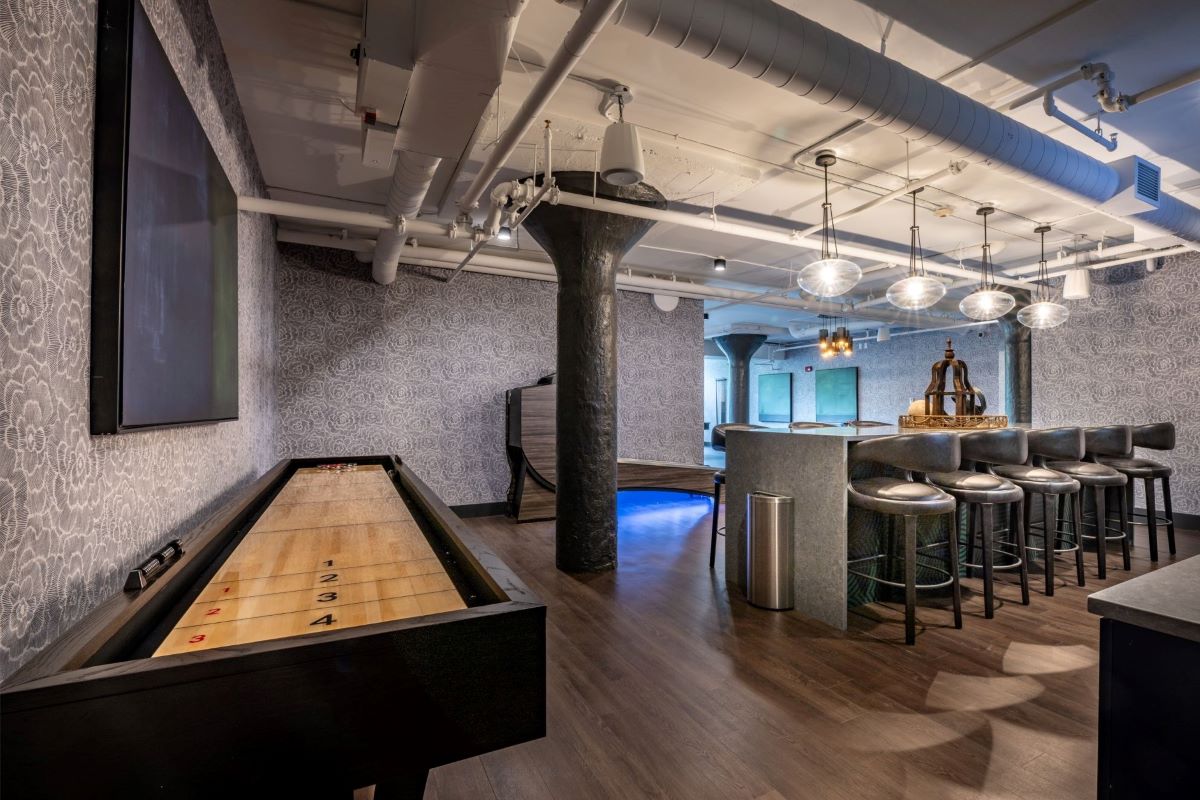 Play hard—billiards, shuffleboard, ping pong, and skee ball await in our clubroom. And kick back—our lounge has the softest seating and a large-screen TV.